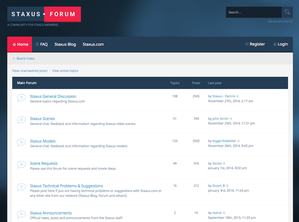 The Forum is the place for you all to talk and share your opinions, talk about the models you love the most, the new scenes, what you would like to watch in the future and all kinds of extra things you can’t find anywhere else. Models, directors and the Staxus crew regularly get in there to share some gossip, talk to fans and find out what the fans want to see from them in the future too, it’s not just a place to chat, it’s also a place to tell those who make the videos you love what you want to see.